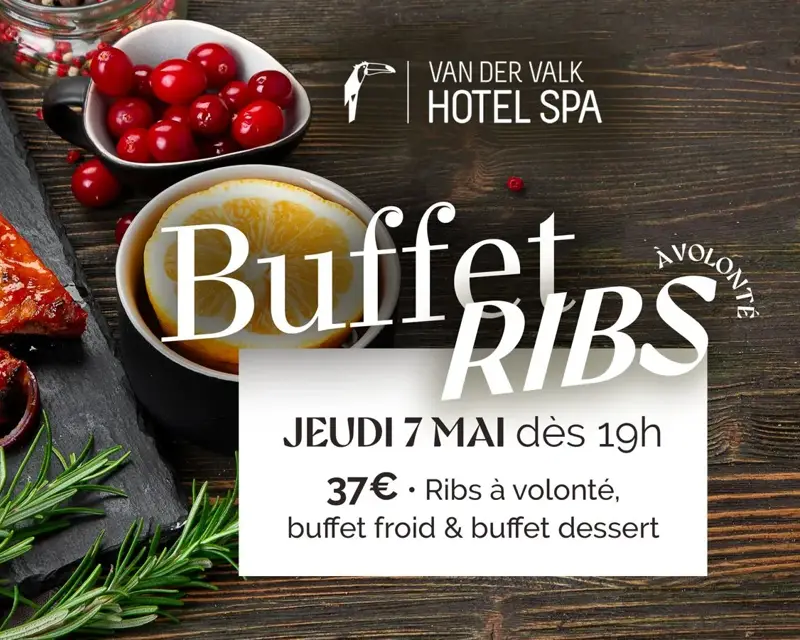 Au programme : de délicieux ribs à volonté, accompagnés d’un buffet froid varié et d’un buffet de desserts pour finir sur une note sucrée.